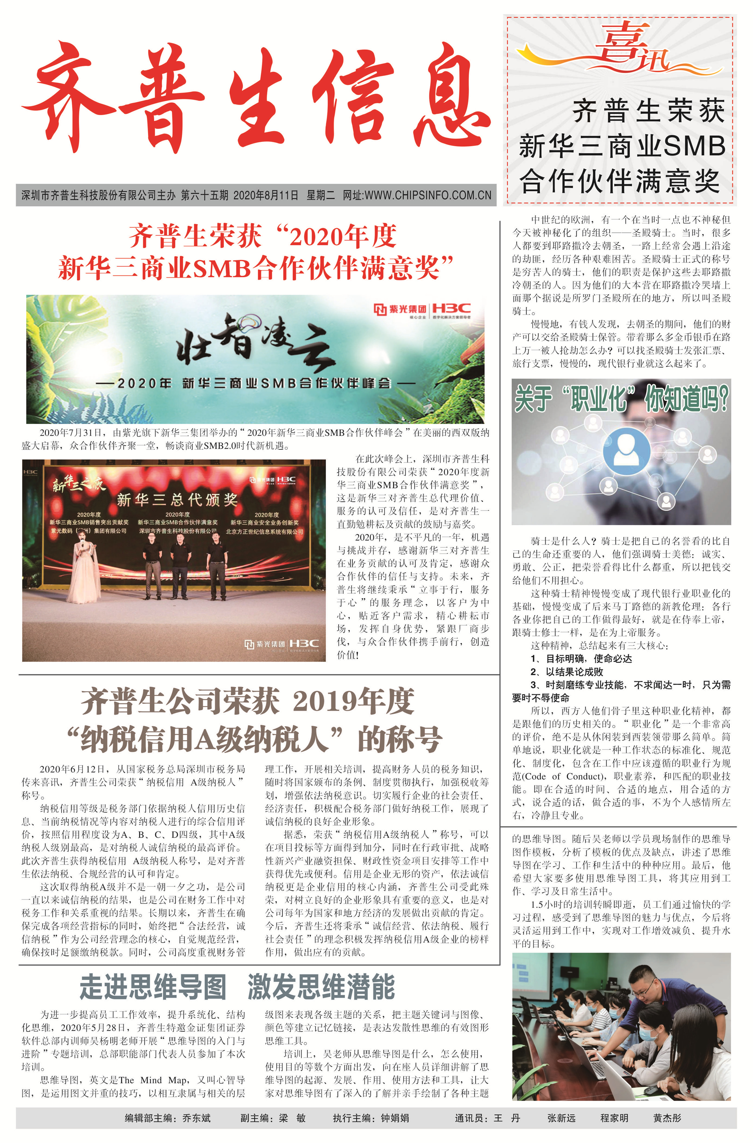 齊普生榮獲“2020年度新華三商業(yè)SMB合作伙伴滿意獎(jiǎng)”——壯志凌云 再登新峰