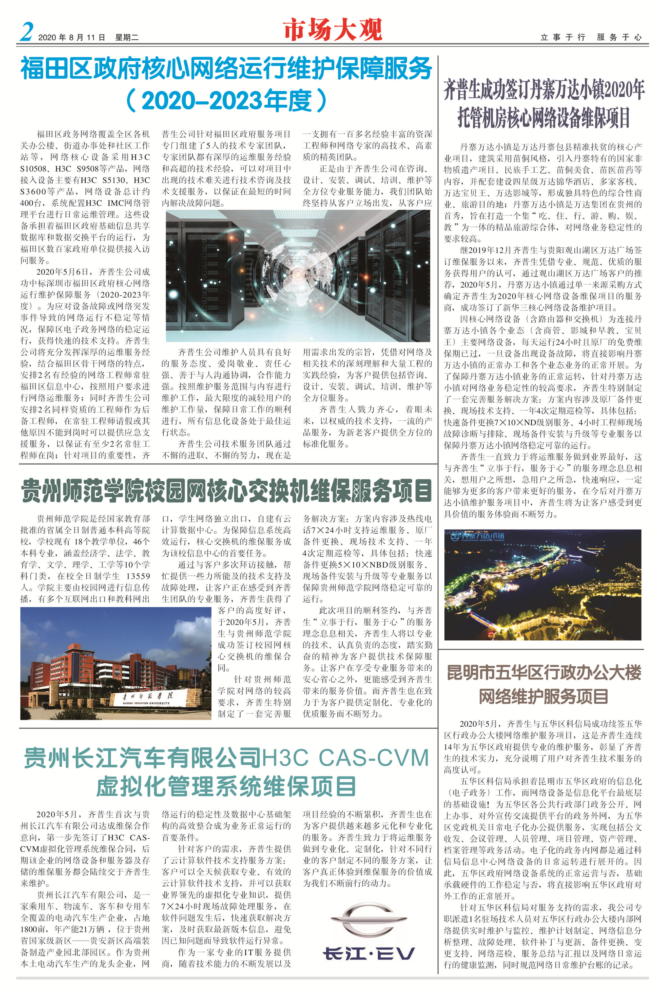 齊普生成功簽訂丹寨萬達小鎮(zhèn)2020年托管機房 核心網(wǎng)絡設備維保項目